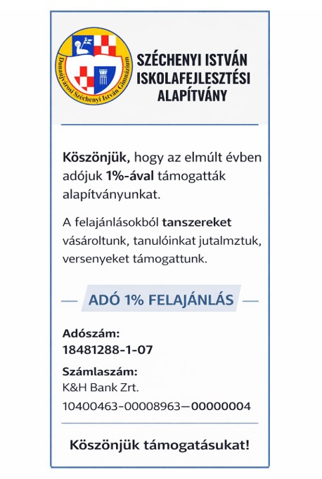 Sok szeretettel várunk benneteket 2026. január 24-én szombaton a Dunaújvárosi Széchenyi István Gimnázium épületébe a felvételi vizsgadolgozatok megírására.