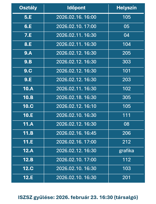 Szülői értekezletek időpontjai (2026. február)