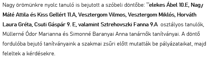 Döntősök voltak Boromisza Norbert, Szabados-Máté Medárd és Szabó Szilárd 7.E osztályos tanulók.
