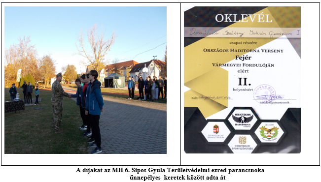 A Honvédelmi Minisztérium megbízásából a Magyar Honvédség Területvédelmi és Hadkiegészítő Parancsnokság MH 6. Sipos Gyula Területvédelmi Ezred által szervezett Fejér vármegyei döntőn 20 középiskolás csapat indult, amelyek közül a legeredményesebbek a verseny után ünnepélyes keretek között vehették át a helyezésüket igazoló okleveleket és jutalmakat a parancsnoktól.