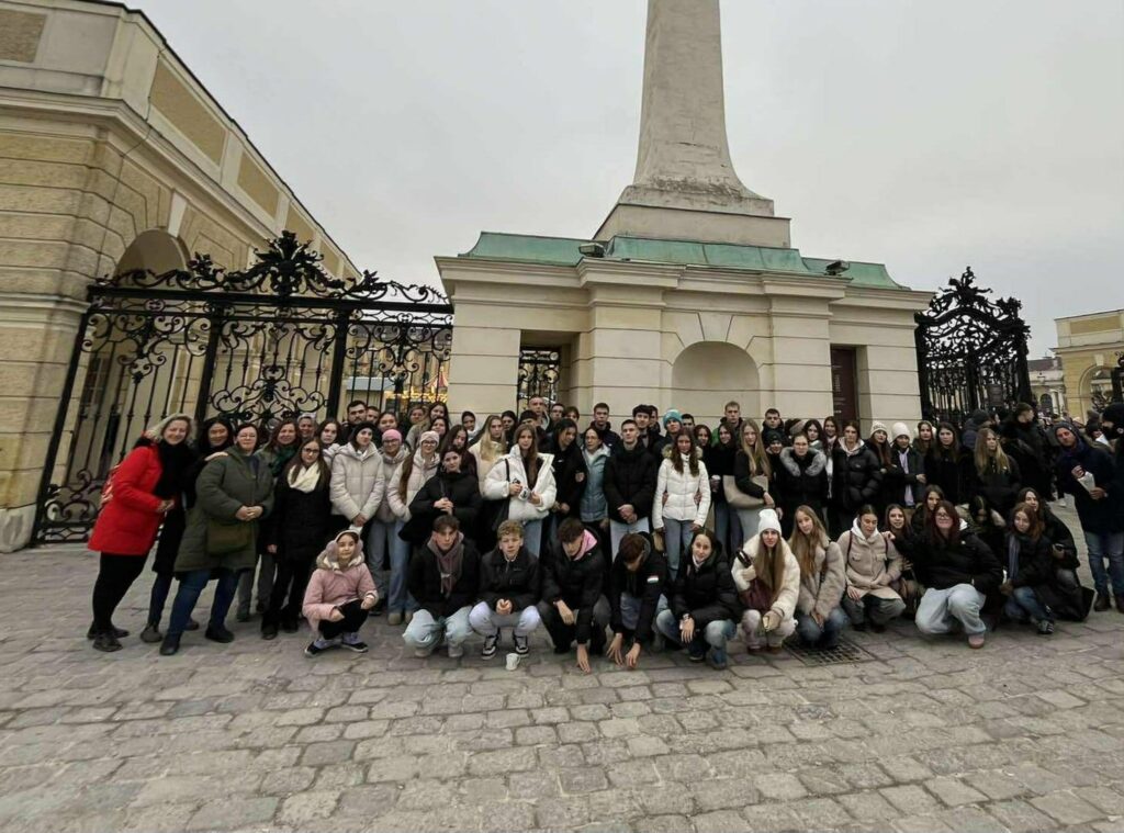 Az iskola „nagygimiseiből” verbuválódott, 72 diák és 7 pedagógus néhány csatlakozó szülővel kiegészülve Bécs felé vette az irányt két autóbuszt megtöltve. A program vásárlási lehetőséggel kezdődött, majd a szállás elfoglalása következett. Ez nem egyszerű művelet egy közel 100 főt számláló csoporttal. Szombaton délután megtekintettük a Kunsthistorisches Museum remekeit, aztán a császárváros jellegzetes épületei között sétálva fedeztük fel a belvárost. Az első nap programja a Városháza előtti adventi forgatagban ért véget, ahol többen korcsolyáztak is a mesésen kivilágított pályán. Másnap a Hundertwasser-ház megtekintésével kezdődött a nap. Ezt követően a Práterbe ment a csapat, ahol Madame Tussauds viaszfiguráival ismerkedhettünk, fotózkodhattunk. A bátrak kipróbálták a vidámparkot is. Innen Schönbrunnba vezetett az utunk. A csodálatos császári kastély megtekintése, egy finom Sacher torta vagy egy kis adventi vásározás után indultunk haza.